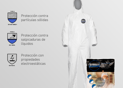Actualmente, cientos de empresas eligen los trajes STEEL GUARD para proteger a su personal en trabajos donde puede haber exposición a partículas sólidas y salpicaduras de diversos líquidos.